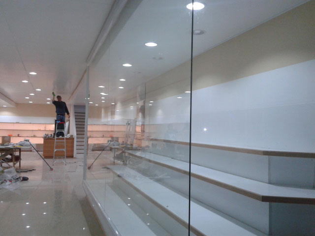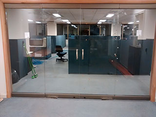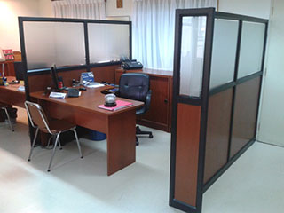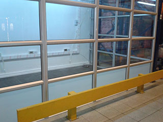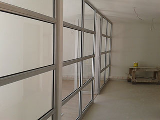 Supermercados Líder Viña del MarTabiquería de oficina en perfilería aluminio mate con cristales incoloros de 5mm superiores y cristales empavonados inferiores.