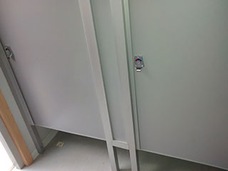 Colegio Altazor de Con-ConDivisiones de baño en aluminio mate con melanina gris de 18mm.